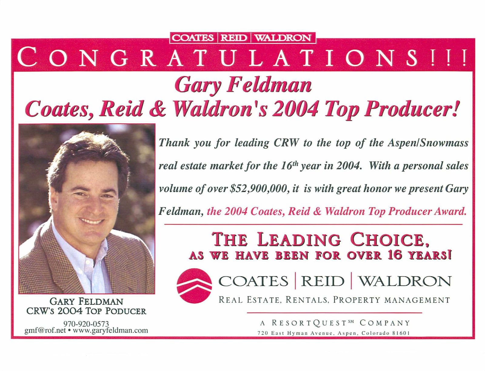 GARY FELDMAN COATE, REID & WALDRON'S 2004 TOP PRODUCER